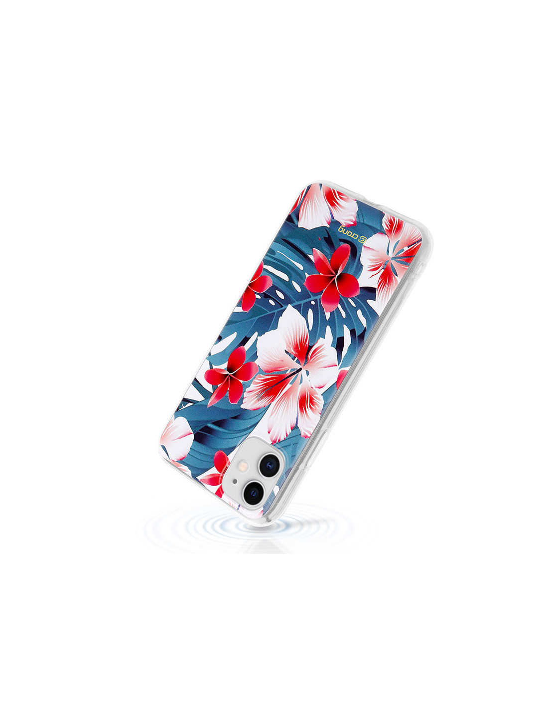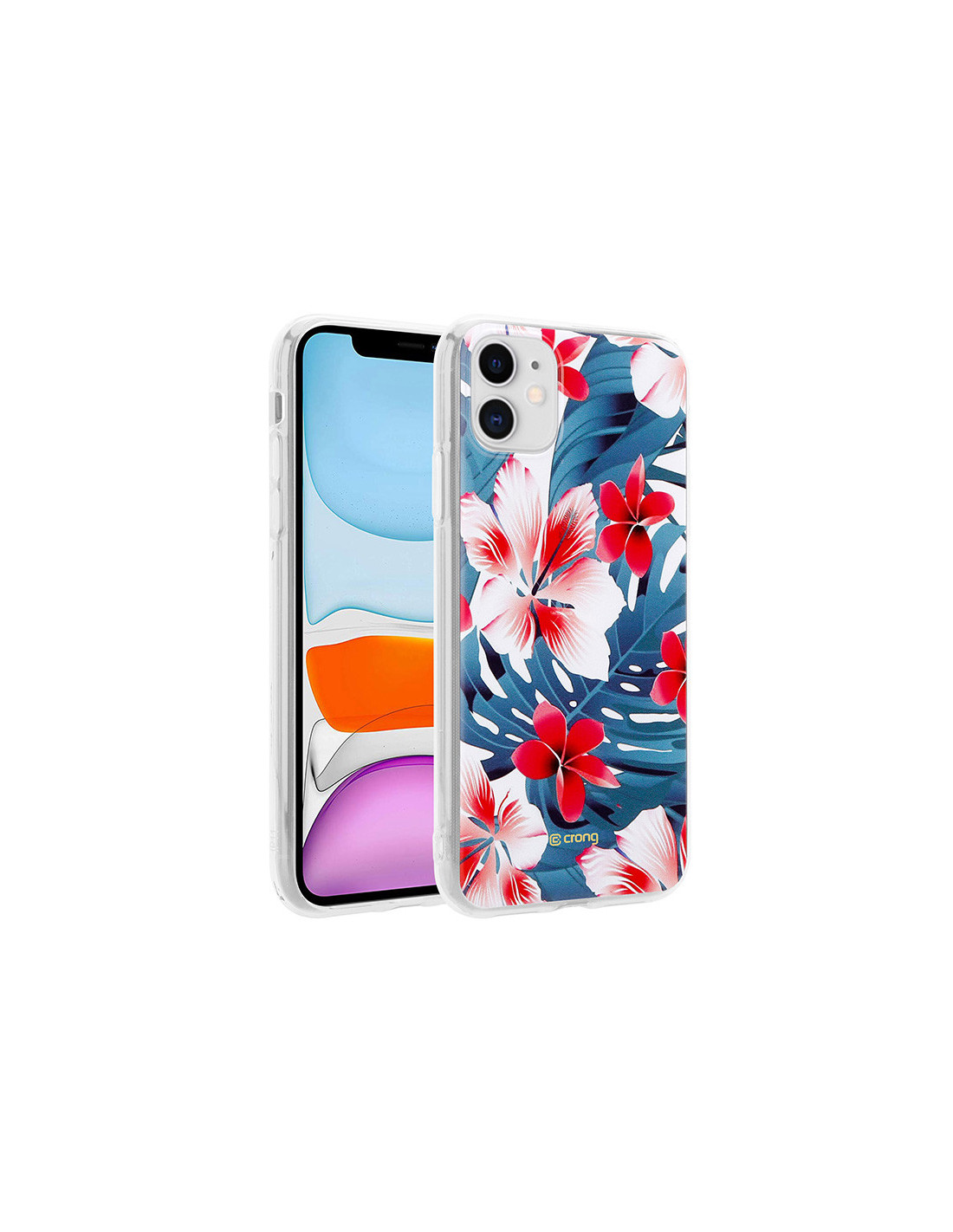 Flower Case firmy Crong dla iPhone 11 to modne i eleganckie etui ochronne z kwiatowymi motywami na pleckach. Atrakcyjny nadruk z dyskretnym logo w złotym kolorze zdobi cały tył telefonu. Elastyczny materiał dopasowuje się do obudowy i zabezpiecza wszystkie krawędzie ekranu dotykowego. Specjalna struktura wewnątrz etui zapobiega przyklejaniu się etui do nagrzanej obudowy smartfona.