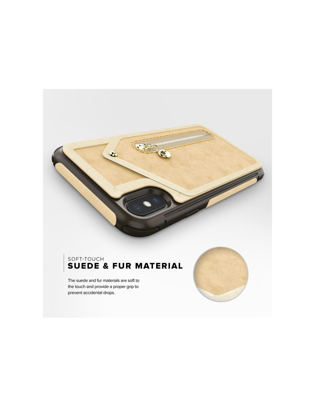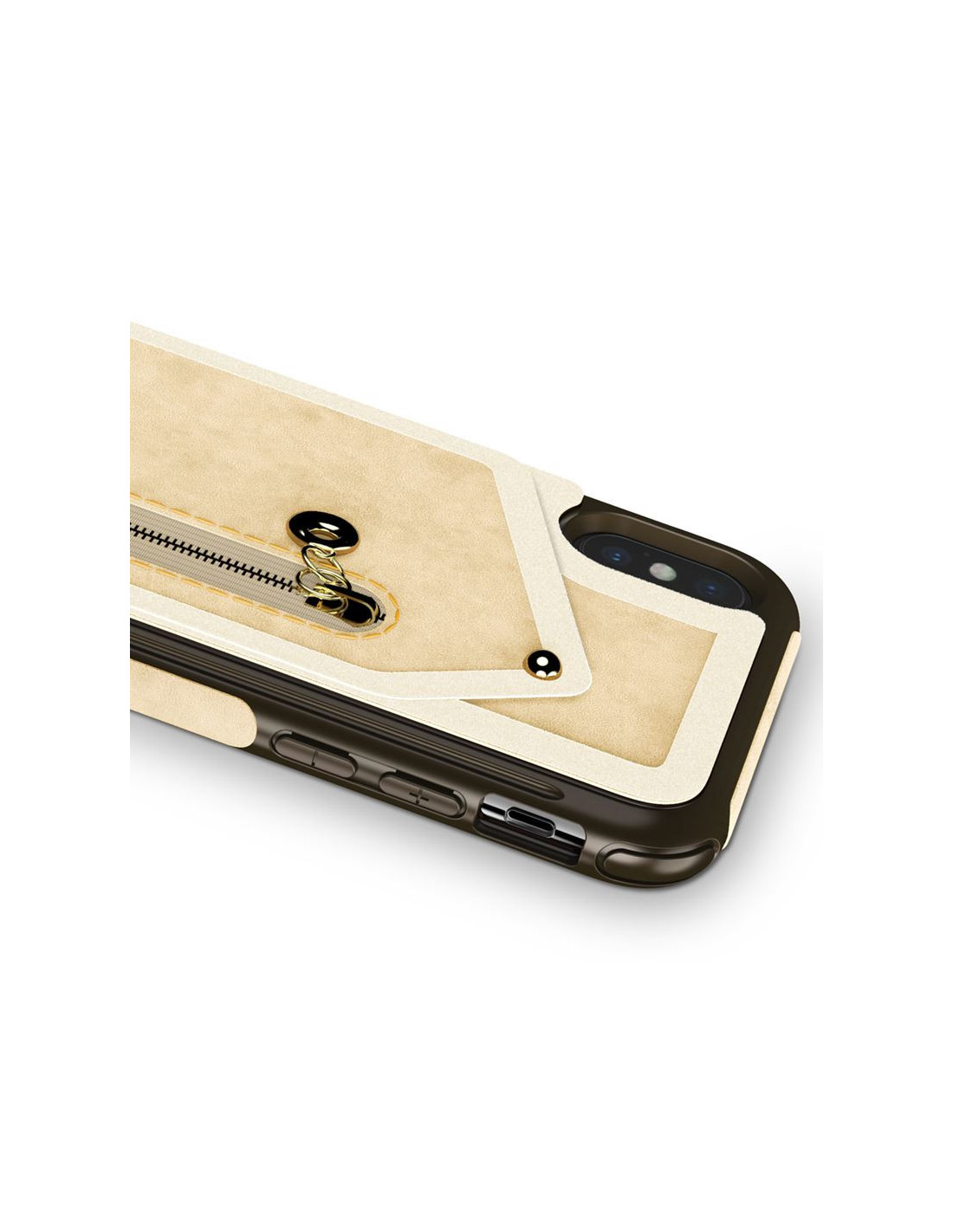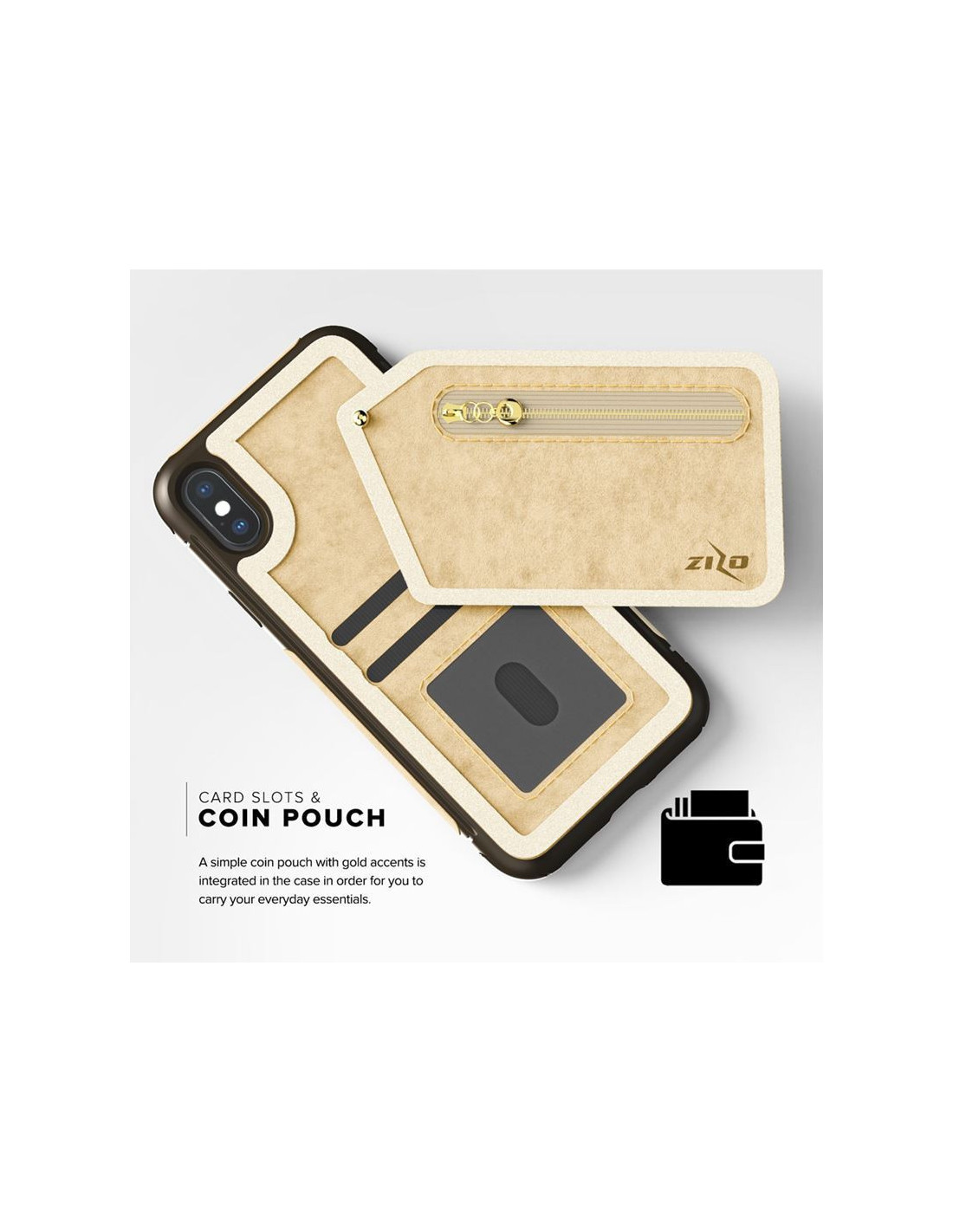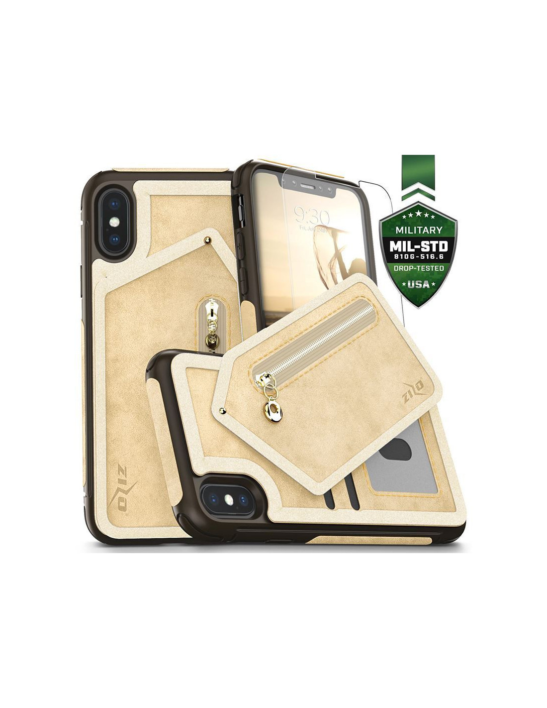 Etui Skórzane Do iPhone X Z Kieszeniami Na Karty + Saszetka Na Zamek + Szkło 9H Na Ekran Zizo Nebula Wallet Case Brązowy
