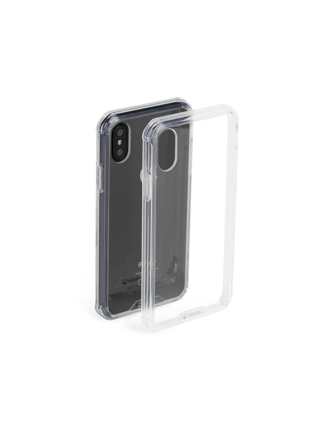 Hybrydowe przezroczyste etui, wykonane z elastycznego tworzywa sztucznego na bokach oraz twardego polikarbonu w tyle. Lekko podniesione brzegi, chronią ekran przed porysowaniem, gdy telefon spoczywa ekranem do dołu. Dokładnie wycięte otwory na porty urządzenia oraz dodatkowe osłony przycisków. Etui posiada wojskowy certyfikat MIL-STD 810G-516.6 świadczący o wysokiej odporności na wstrząsy i uderzenia, dbając o bezpieczeństwo urządzenia.