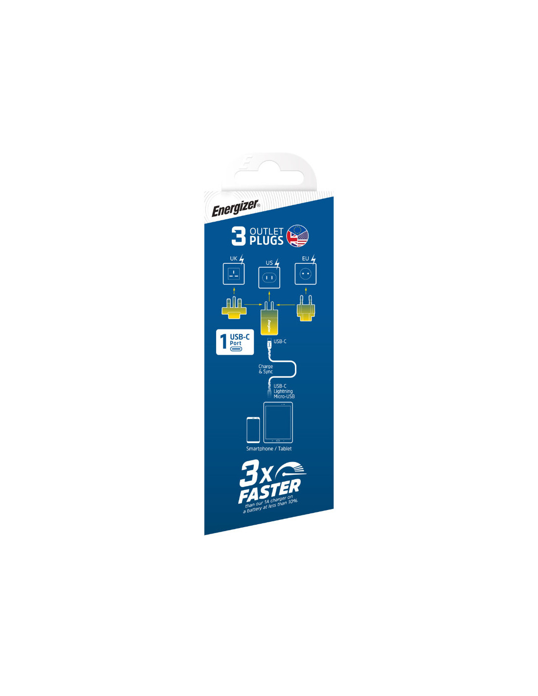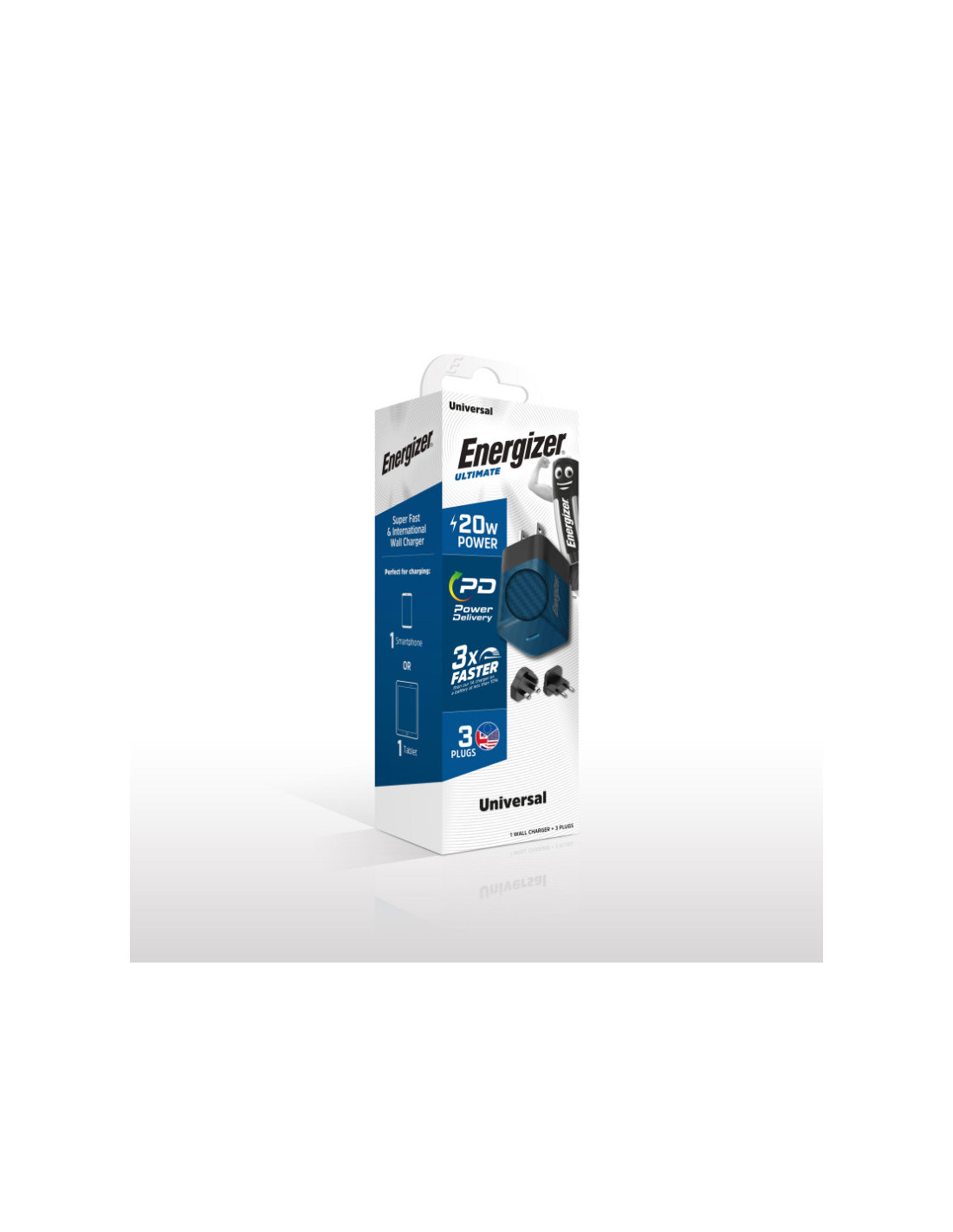Ładowarka Sieciowa Multiplug EU / UK / US Gan USB-C 20 W Pd Energizer Ultimate Niebieski