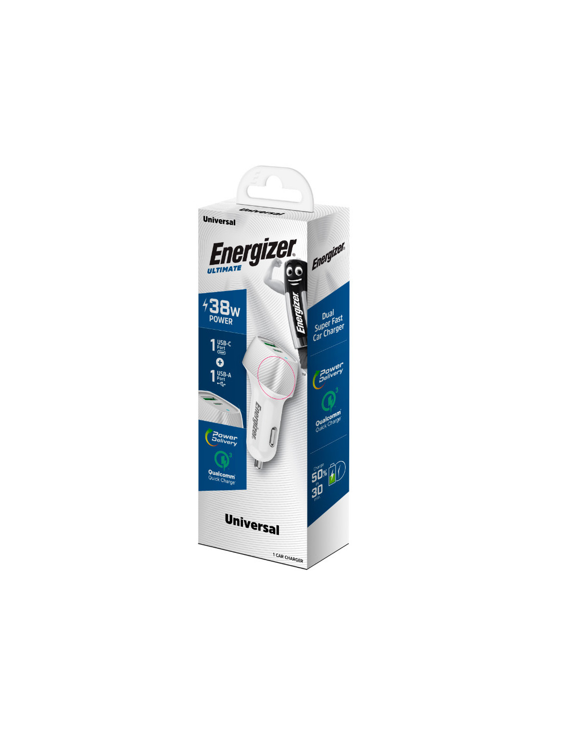 Ładowarka Samochodowa USB-C & USB-A 38 W Pd + QC 3.0 Energizer Ultimate Biały