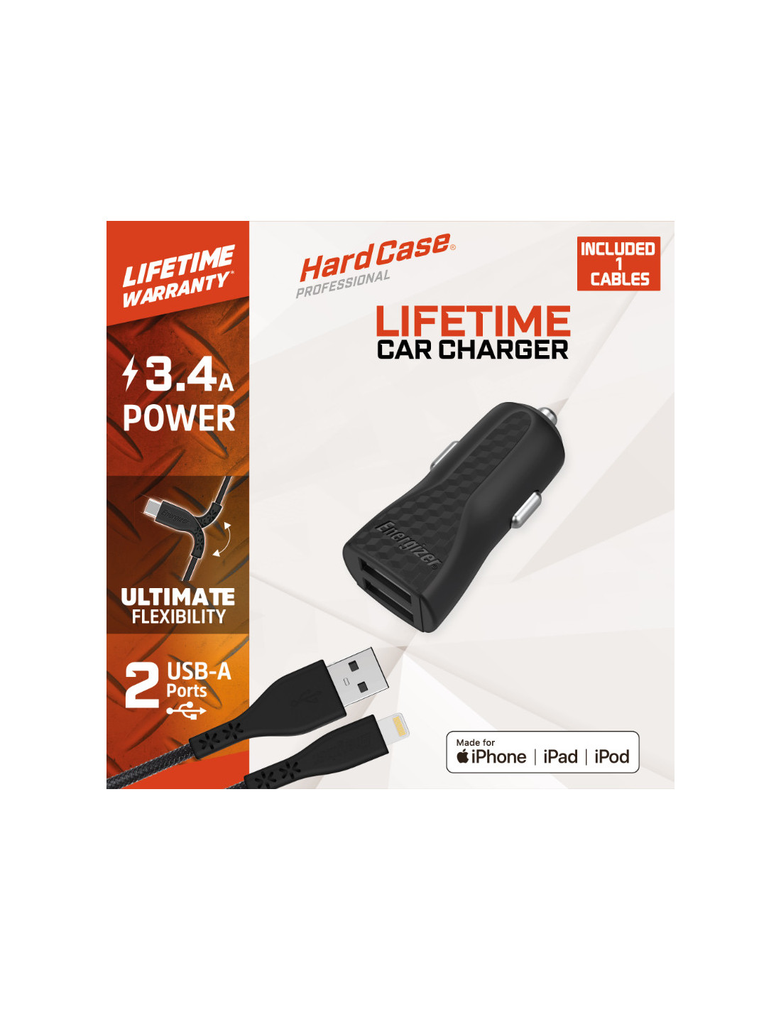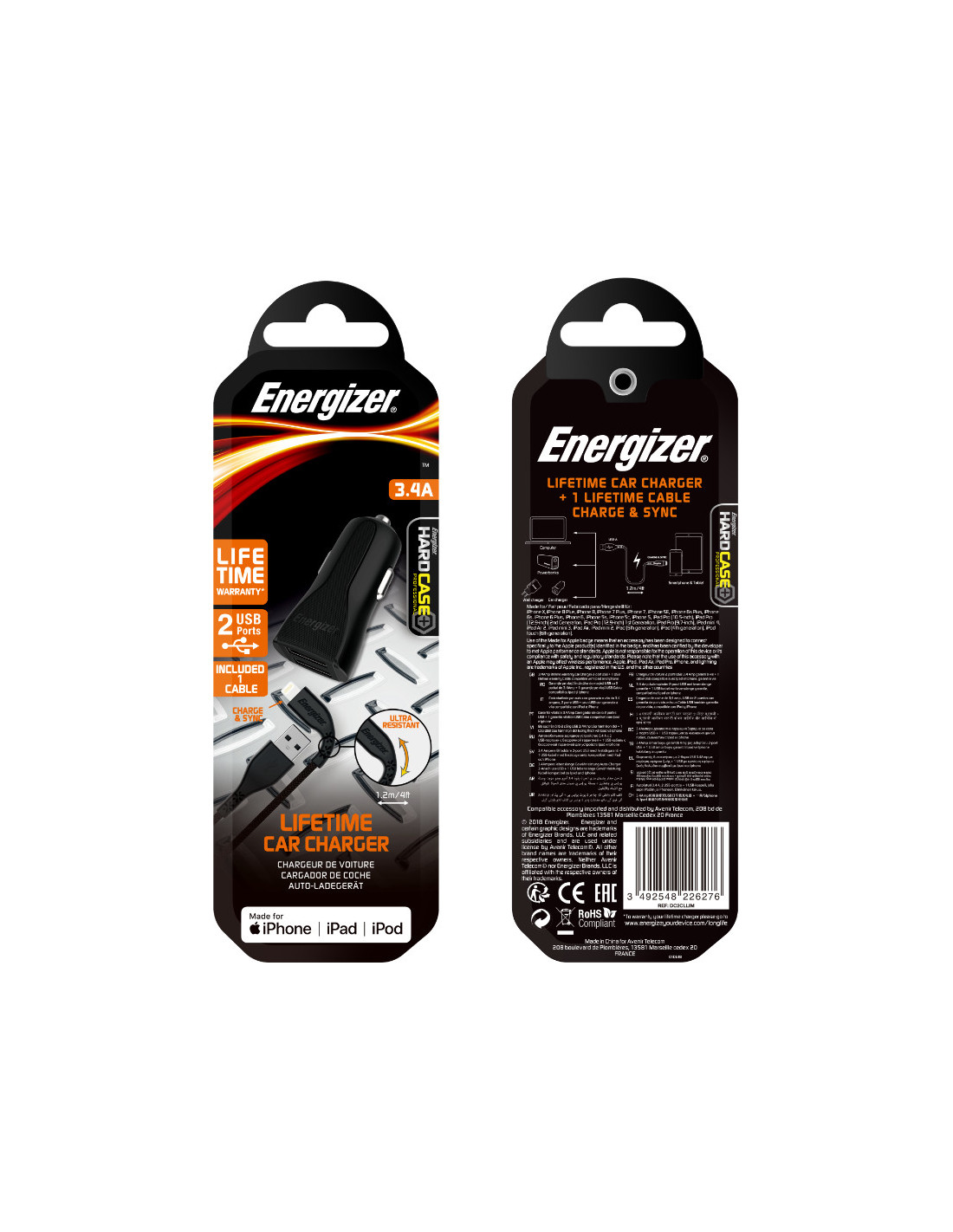 Ładowarka Samochodowa 2x USB-A 17 W 3.4A + Kabel Lightning Certyfikat Mfi Energizer Hardcase Czarny
