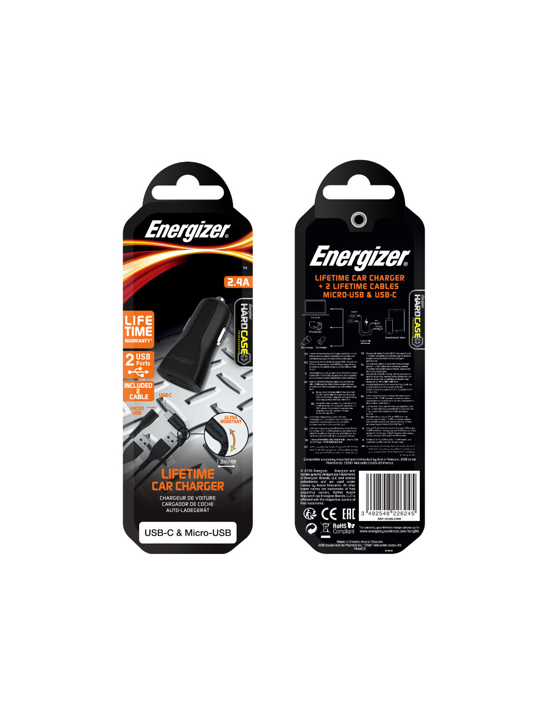 Ładowarka Samochodowa 2x USB-A 2.4A + Kabel USB-C & Micro USB Energizer Hardcase Czarny