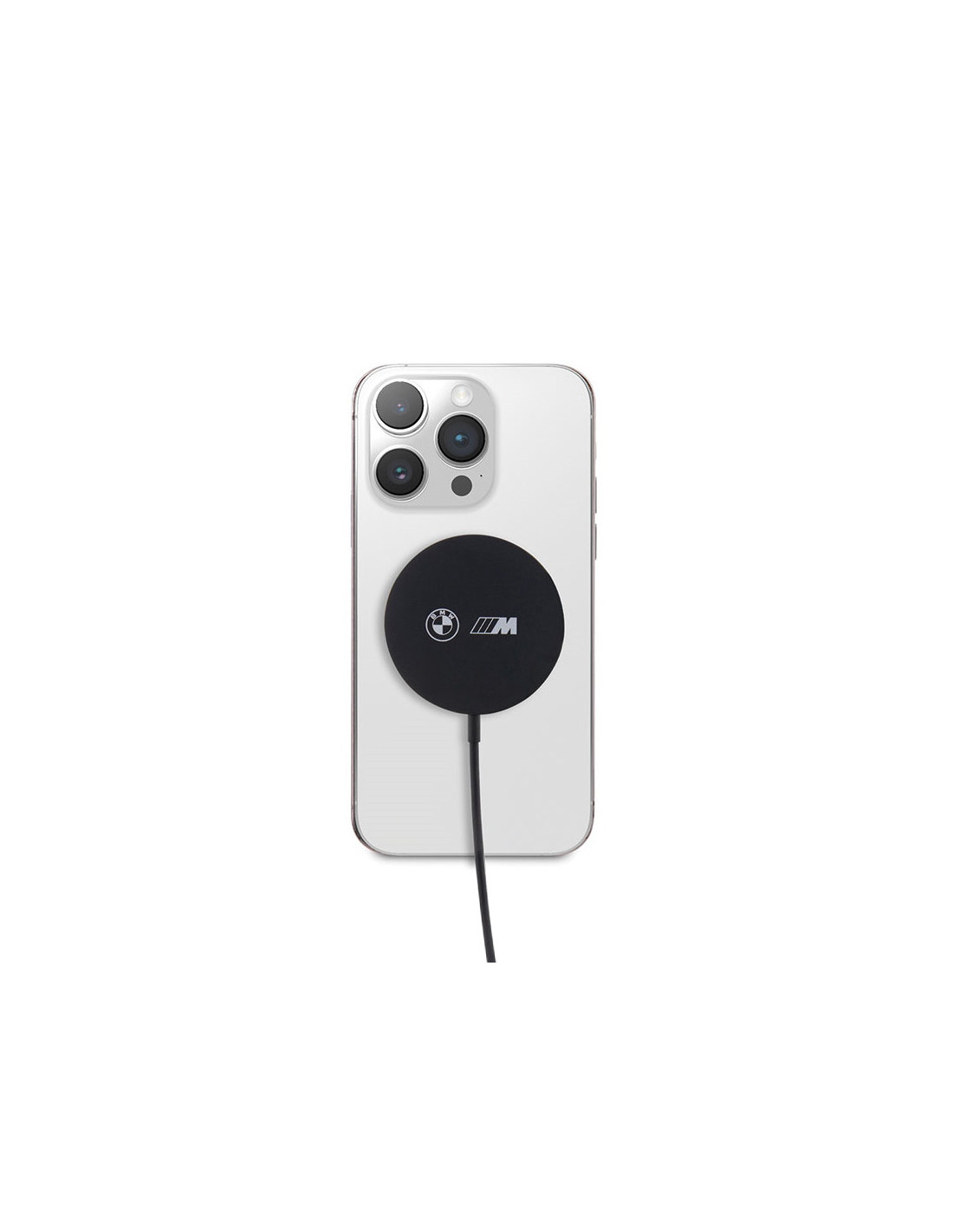 Ładowarka magnetyczna BMW M Edition, kompatybilna z Apple MagSafe, w kolorze czarnym.
